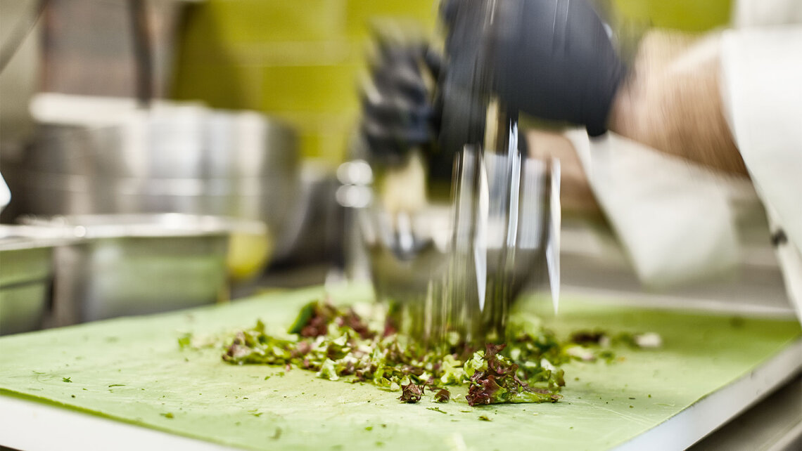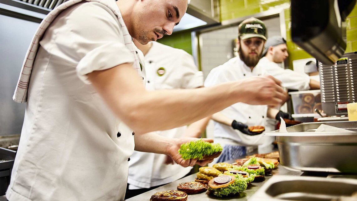 Bei Burgerlich machen wir alles selbst, aus frischen und regionalen Zutaten. Das schmeckt den Leuten und so gehen in der Mittagszeit gut und gerne mal 200 Essen in 150 Minuten raus. Das bedeutet: alle 45 Sekunden eins. Da müssen die Abläufe in der Küche stimmen – von der Bestellung, über die Spültechnik bis zur Resteentsorgung.