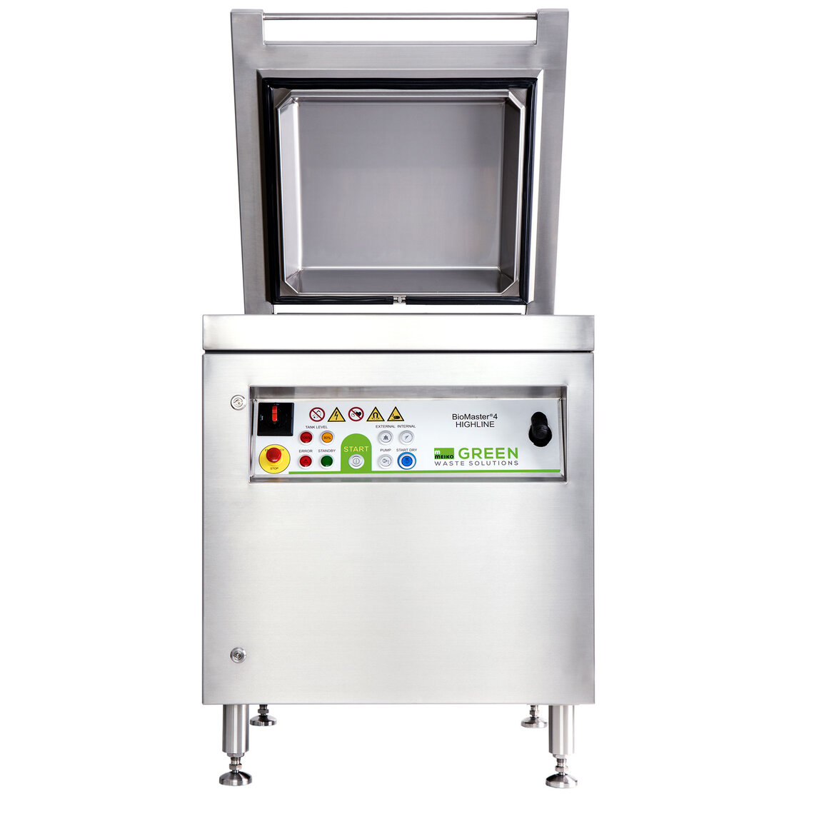 The BioMaster®4 Highline is a powerful input station for all kitchen scraps and food waste. Users can choose between two programs (STANDARD and DRY) to efficiently process food waste of different types. Whichever option they choose, the MEIKO GREEN method of homogenisation guarantees a superbly reliable process with a minimal use of process water. The input station offer top-notch hygiene and are easier to clean thanks to their practical shape, 150-millimetre floor clearance, optimal integration into benches and tables, and a whole series of other cleverly designed features. Compared to the BioMaster®4 Plus, the HIGHLINE model makes life even easier for users thanks to additional features including a spray head, water meter, and built-in cleaning program.