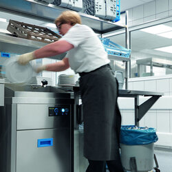 The BioMaster®4 Plus comes in the same chassis as the BioMaster®4 Highline: Offering a 150-millimetre floor clearance, a standard-compliant water supply, and the option of plinth mounting, the BioMaster®4 Plus is easy to clean and compatible with tables and hygiene stations. Despite having the same chassis, it is very much in a class of its own – and it represents the perfect choice for medium and large commercial kitchens! Just 50 to 80 seconds is all it takes to process kitchen waste and leftovers, and it packs plenty of punch to deal with sit-down meals, buffets, and catering work.